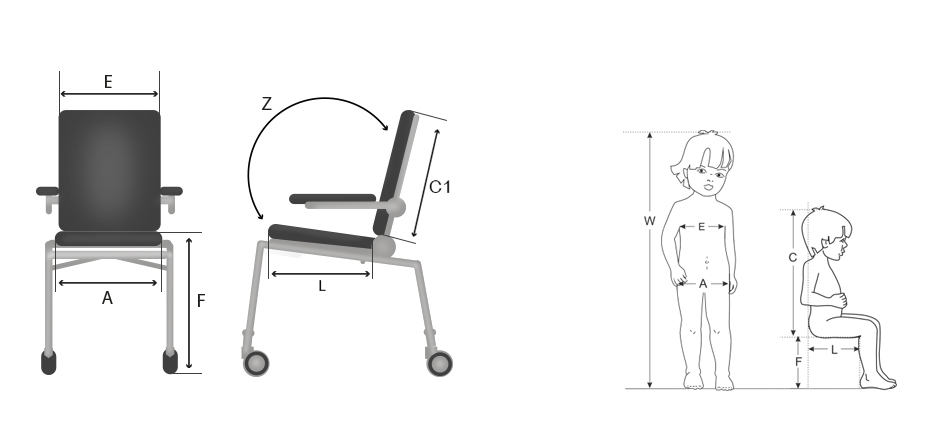 Seggiolina terapeutica Jordi per scolastico, casa e lavoro