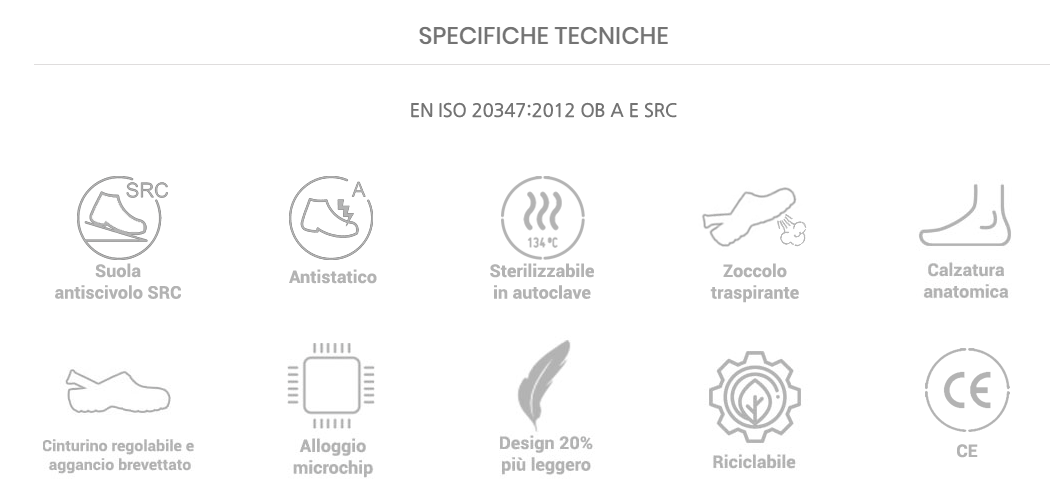 Zoccolo professionale in gomma termoplastica (SEBS), antistatica e priva di lattice. Sterilizzabile in autoclave fino a 134 °C. NUOVO DESIGN!